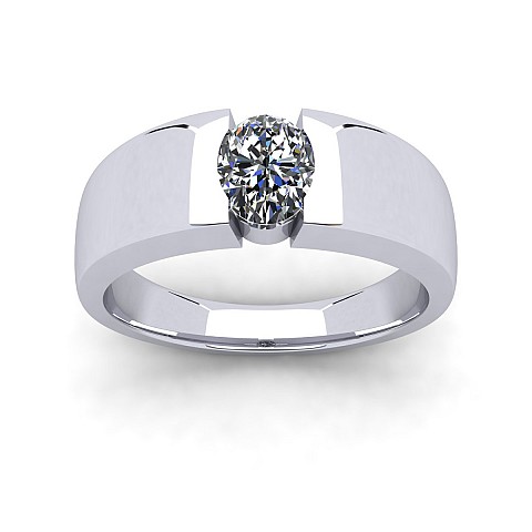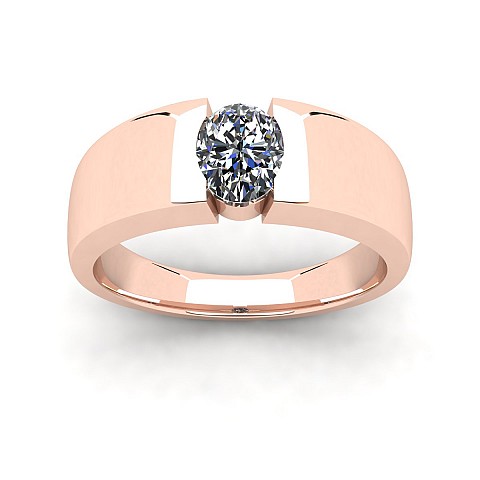 A simple and contemporary setting for an Oval diamond.The Oval diamond is channel set in a reverse tapered band.