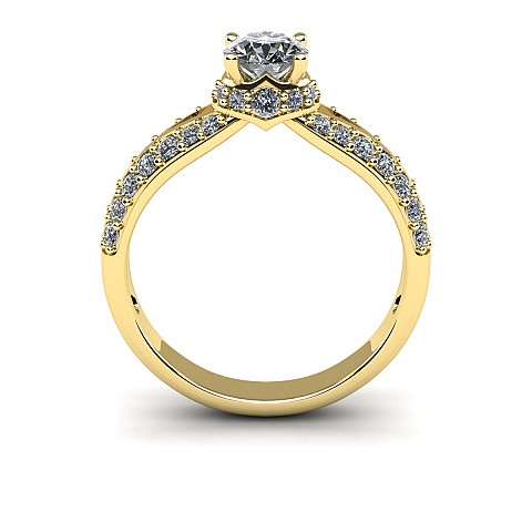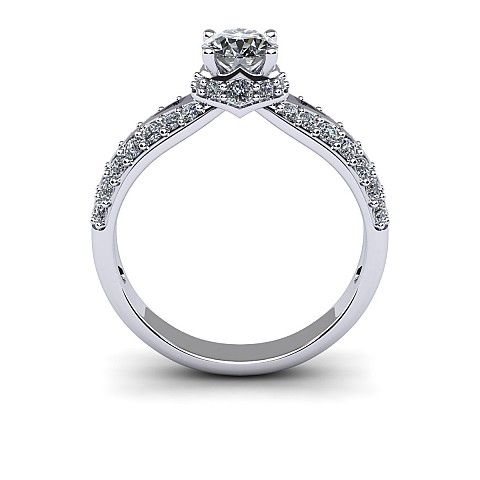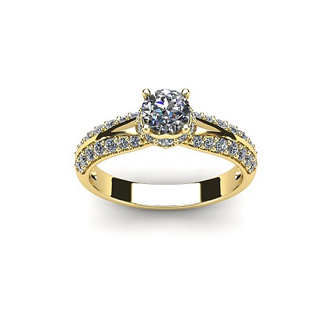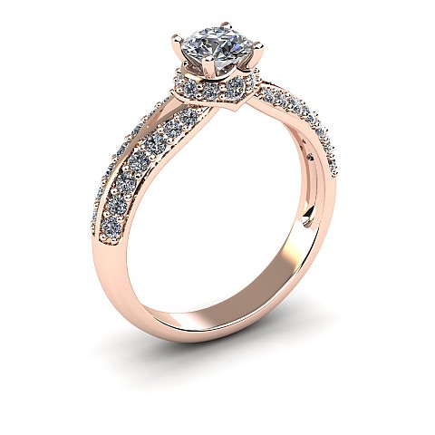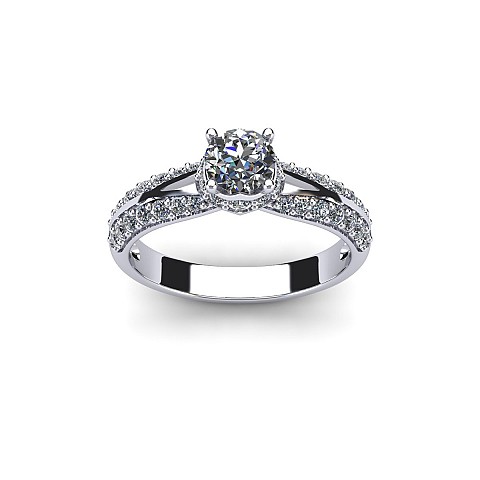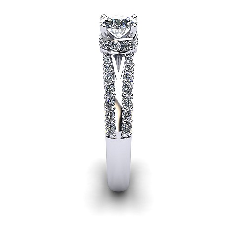 The stunning split band is encrusted with round brilliant diamonds which highlights the centre diamond beautifully.