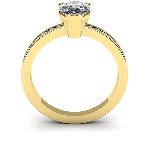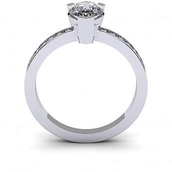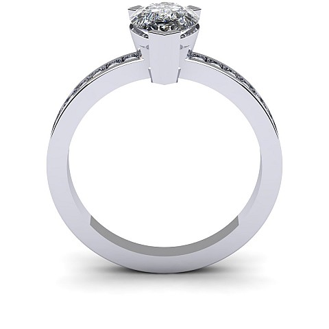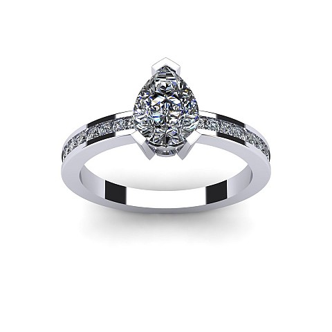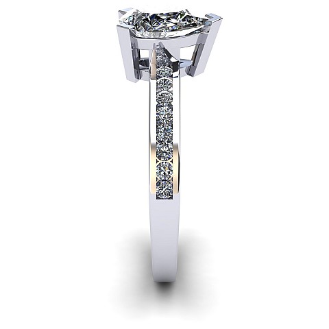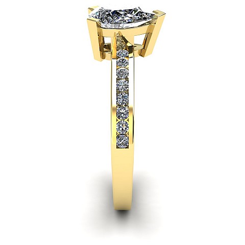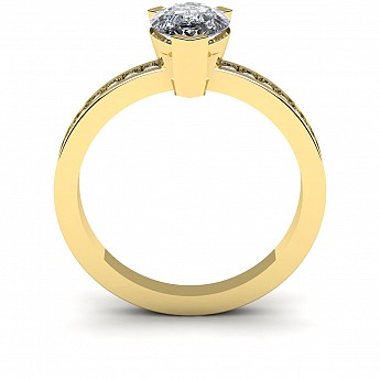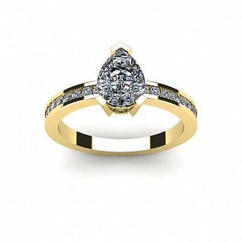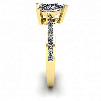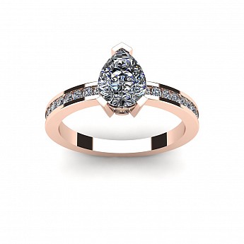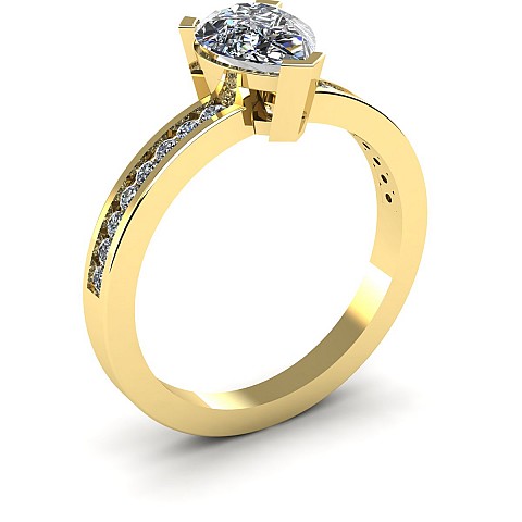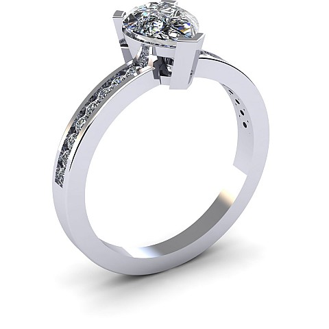 A fabulous Pear shape engagement ring with channel set round diamonds decorating the band.