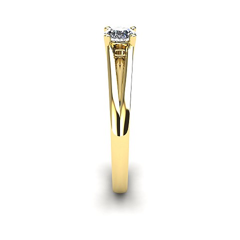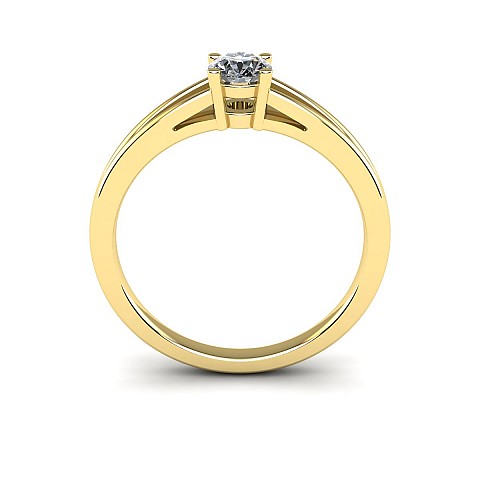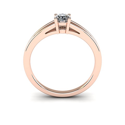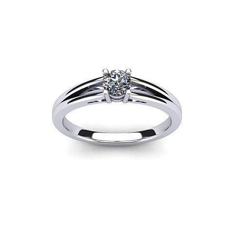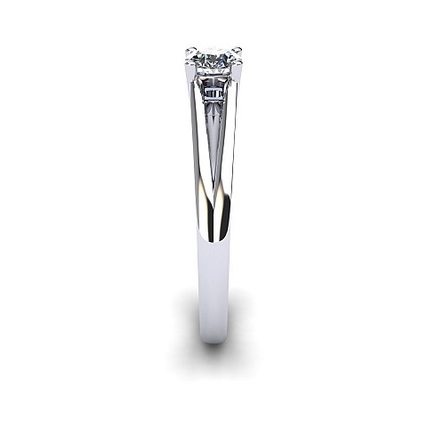 This wonderful take on the classic solitaire engagement ring design draws the eye to the diamond with the split-shoulder detailing.