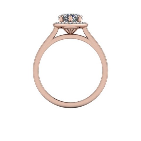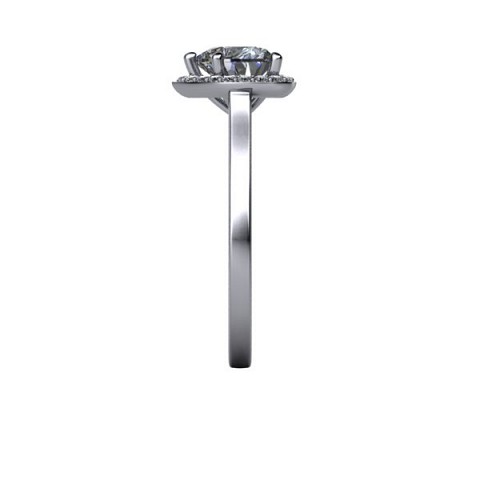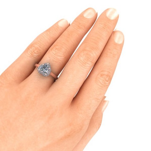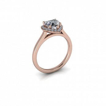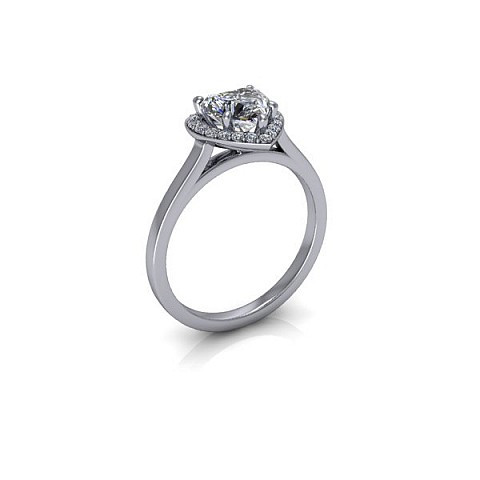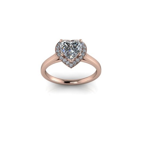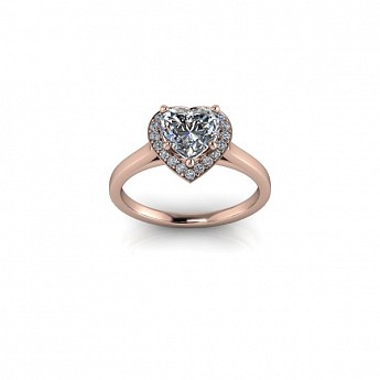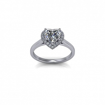 A romantic and beautiful heart shape diamond engagement ring. The centre diamond is surrounded by a delicate halo of round diamonds.