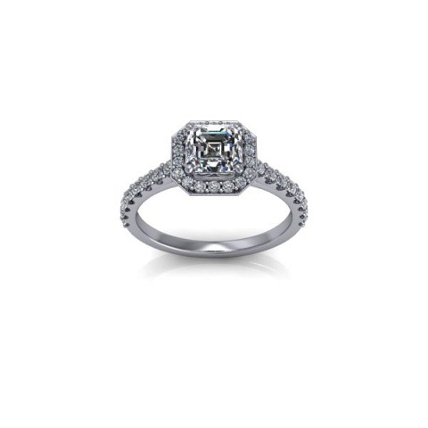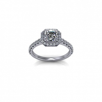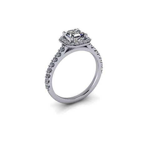 The asscher centre diamond and round brilliant accent diamonds combine to create a truly special engagement ring.