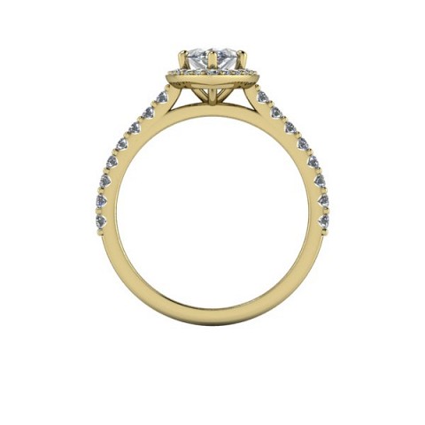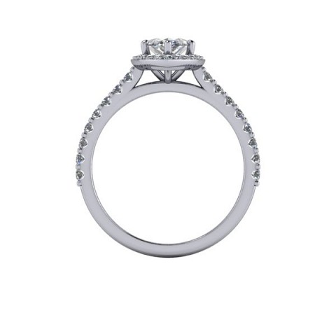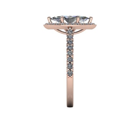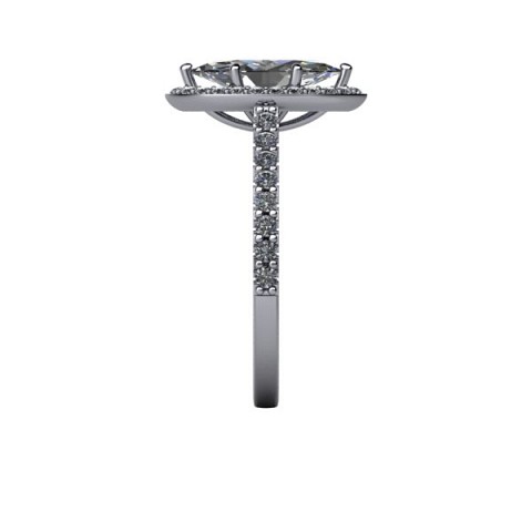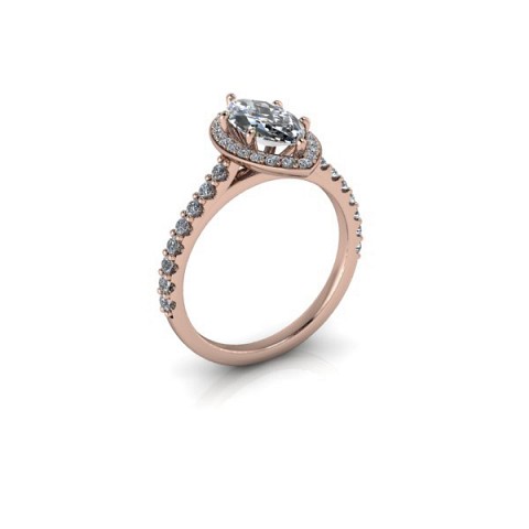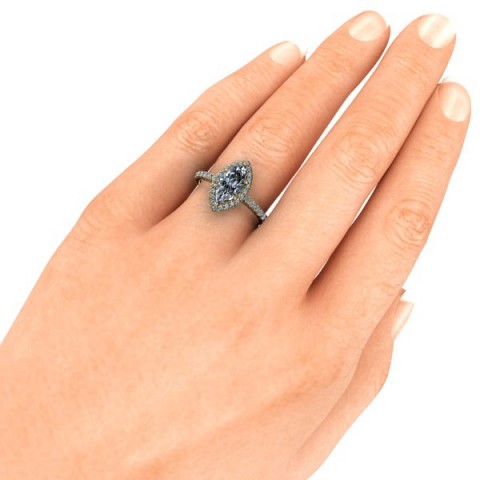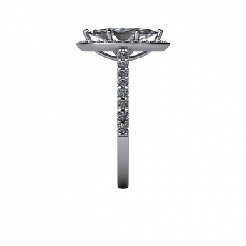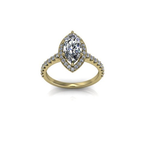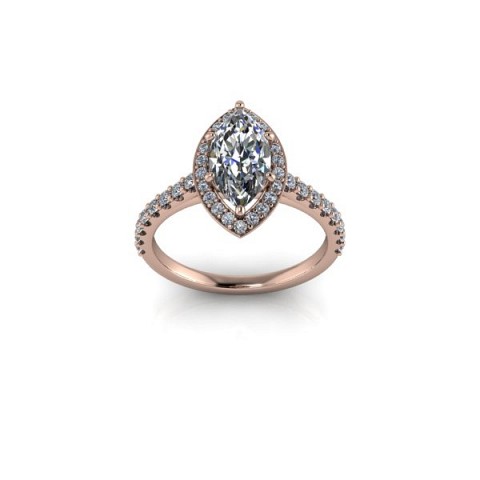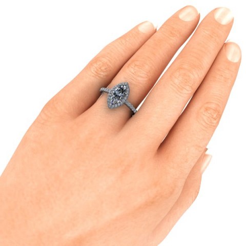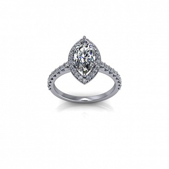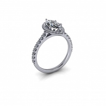 A unique and contemporary engagement ring, The Vega Setting features a marquise centre diamond surrounded by a delicate halo of round diamonds that extend down the band.
