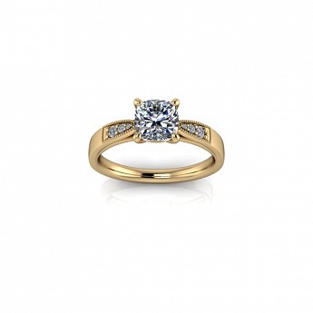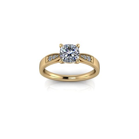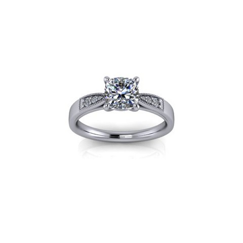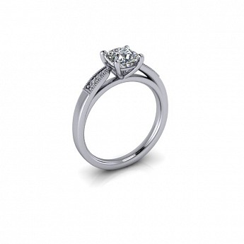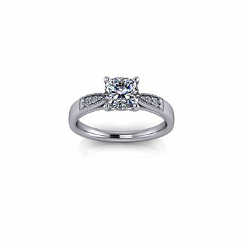 The miligrain detailing and diamond accents combine to create a vintage inspired engagement ring. A classic design to be treasured for a lifetime.