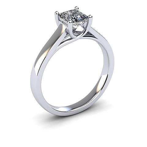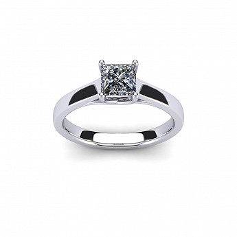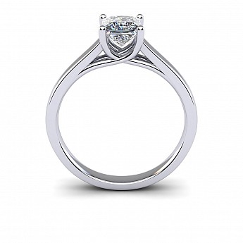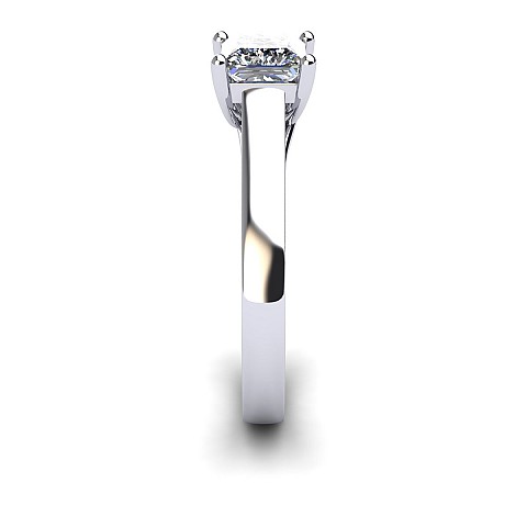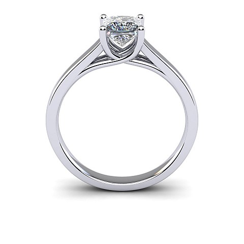 A very popular design for a solitaire princess cut, asscher or square radiant diamond. Featuring crossover claws and a solid squared off band.