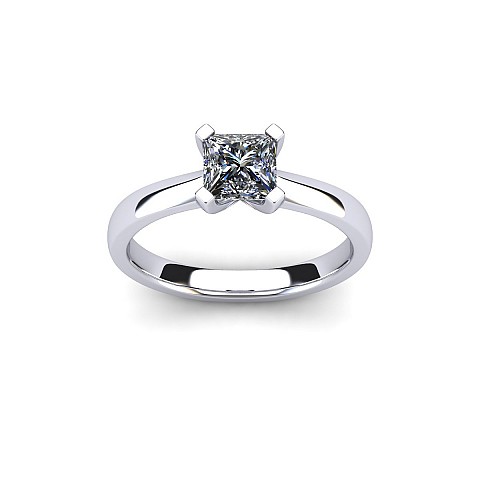 A stunning and contemporary ring design to take a Princess, Asscher or Square Radiant cut diamond. The four claw setting is U shaped and the shoulders are knife edged.