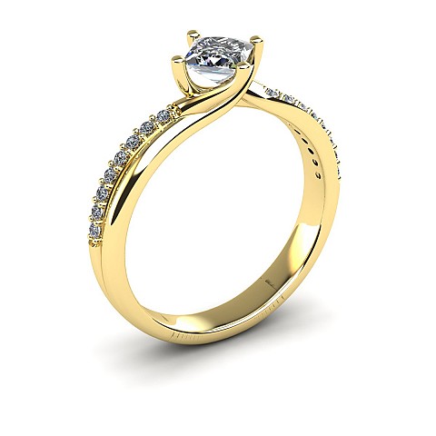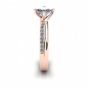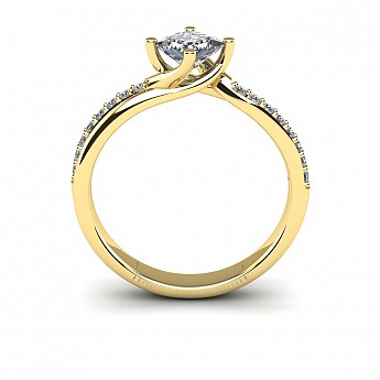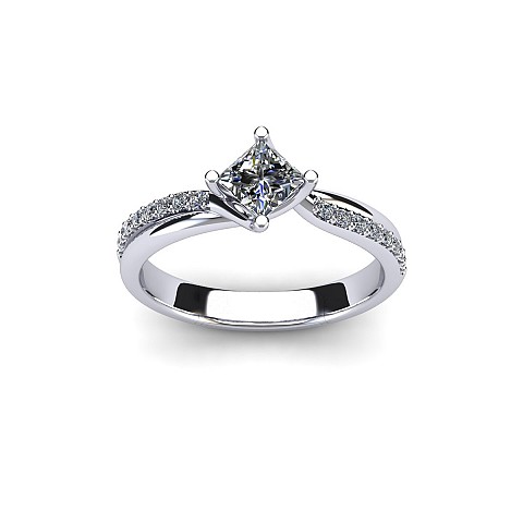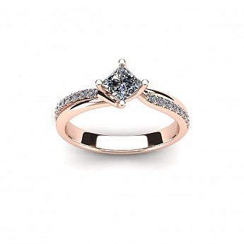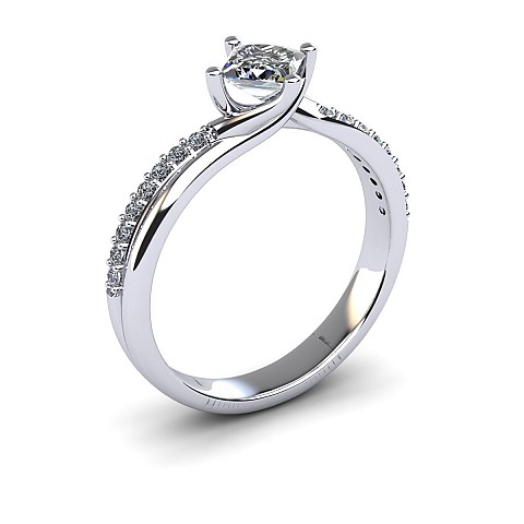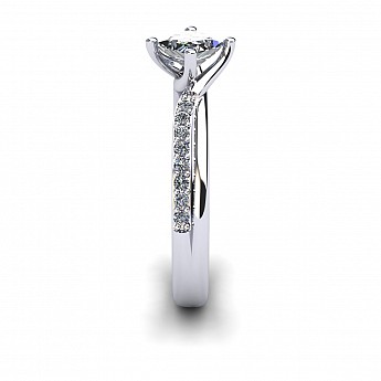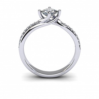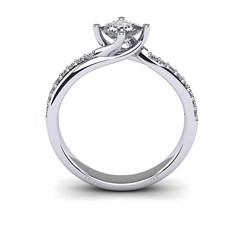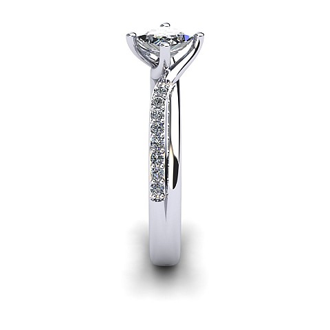 With the option of a round or princess cut centre stone, the unique positioning of the claws add that extra bit of difference to this stunning engagement ring. The twisted shank and pave set round brilliant diamonds lift the centre stone beautifully.