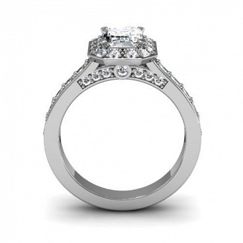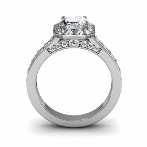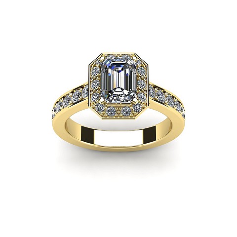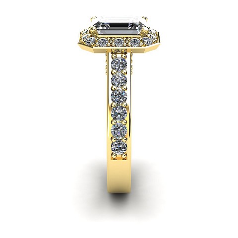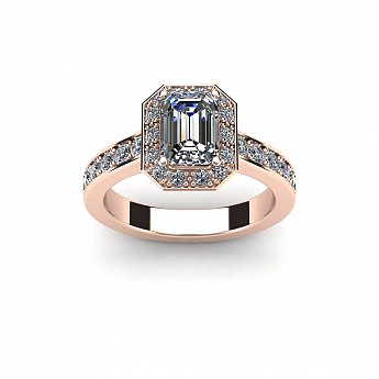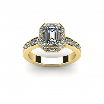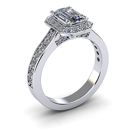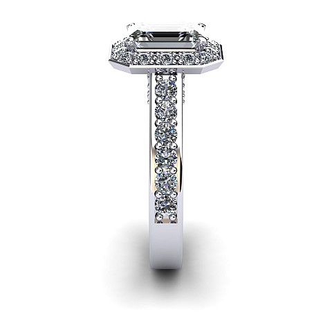 This engagement ring is the epitome of old-world glamour.The emerald centre stone is off-set with 40 small round brilliant diamonds.