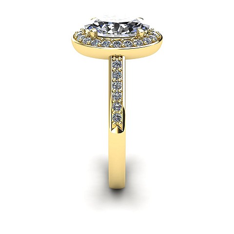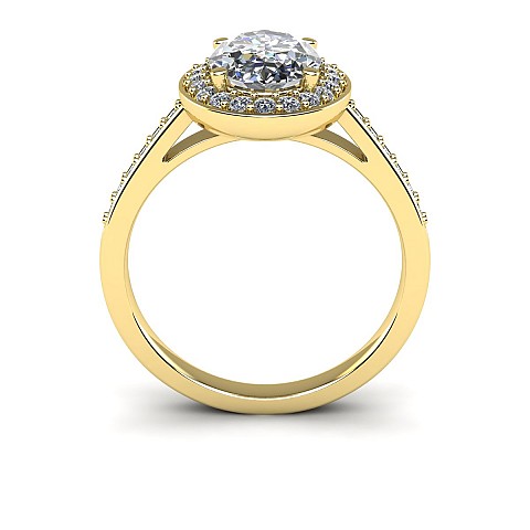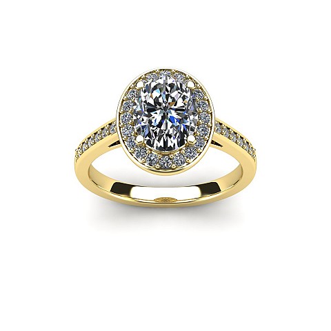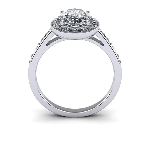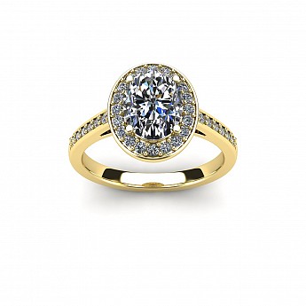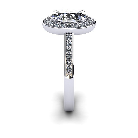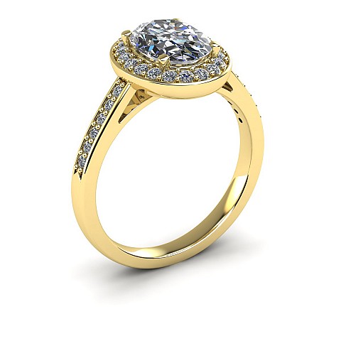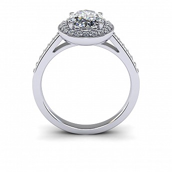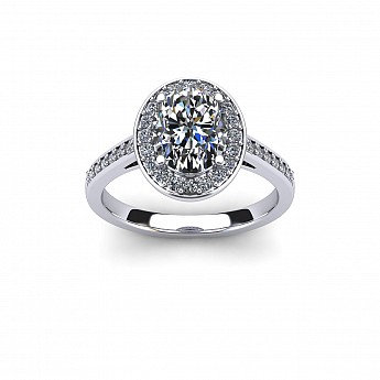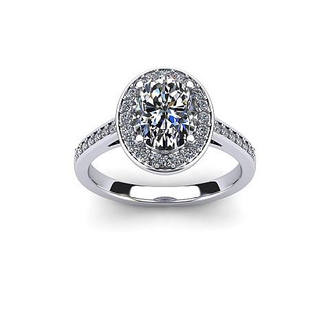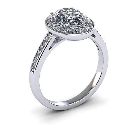 Ovals are becoming increasingly popular as an alternative to the round diamond and this particular design is fabulous. Featuring a halo of diamonds circling the oval as well as decorating the shoulders, this engagement ring will undoubtedly have amazing impact.