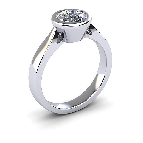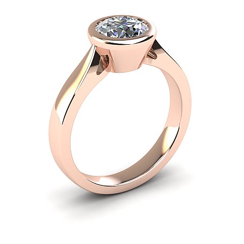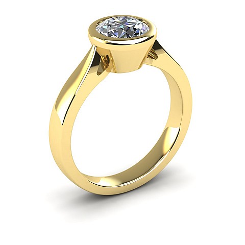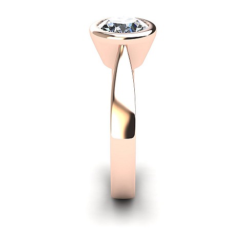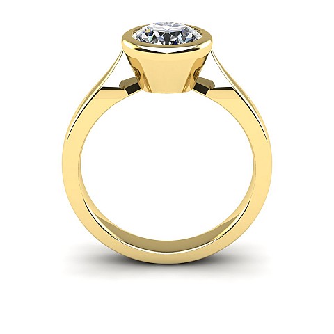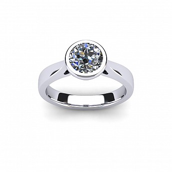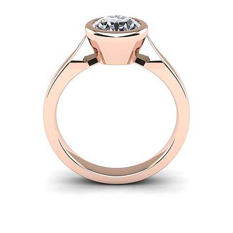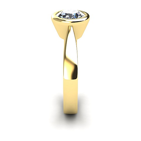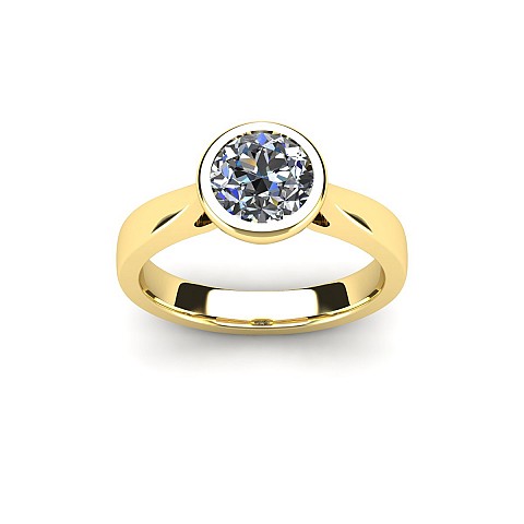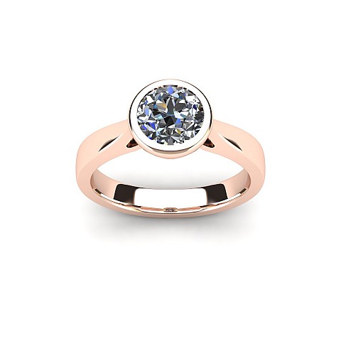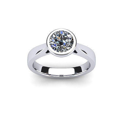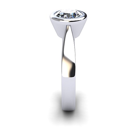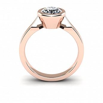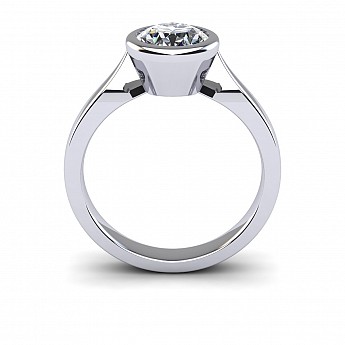 This beautifully modern and contemporary engagement ring features a bezel-set round diamond, giving the ring a clean appearance while also protecting the stone. Perfect for women with active and busy lifestyles.