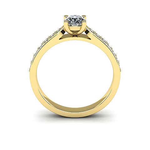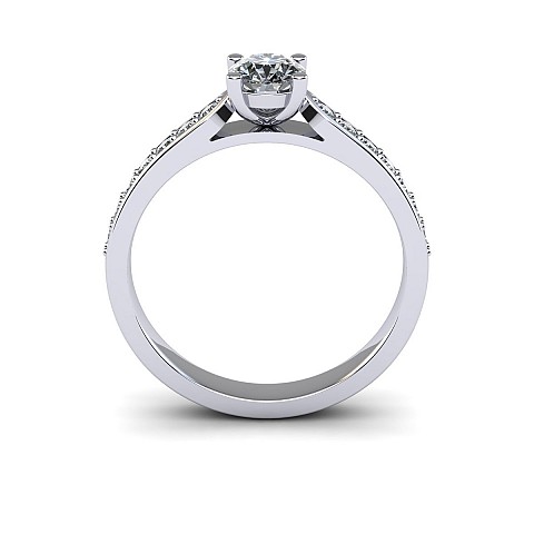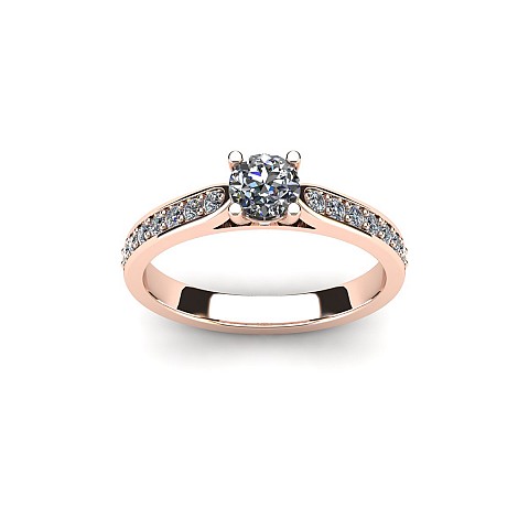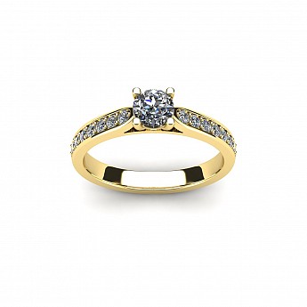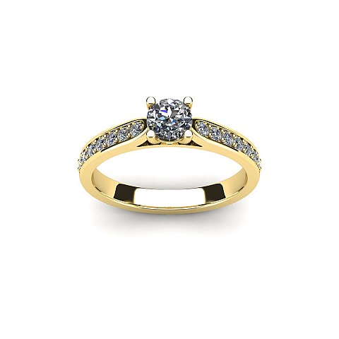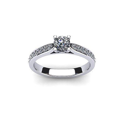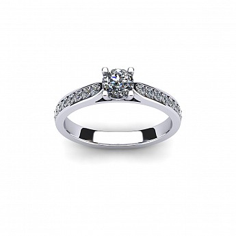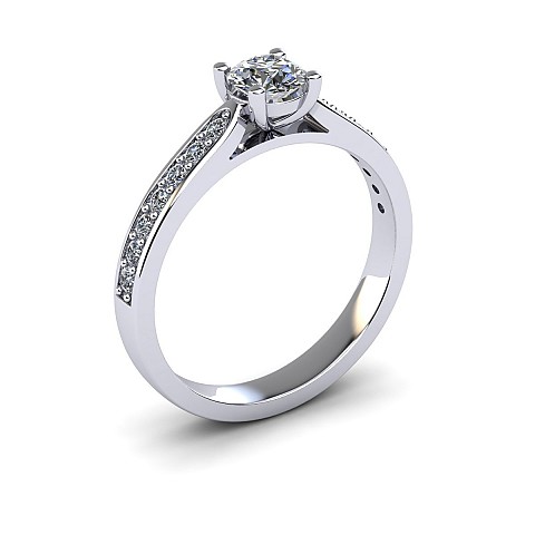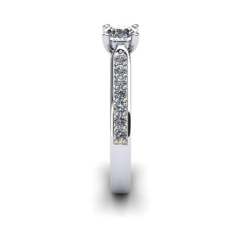 A classic solitaire diamond engagement ring with that extra bit of difference.The shoulders are decorated with 14 round diamonds which compliments the centre stone to perfection.