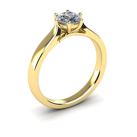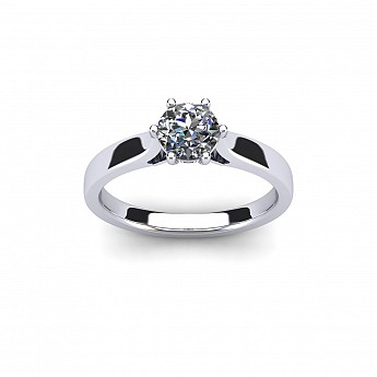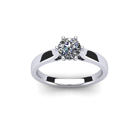 A beautiful and traditional six claw diamond ring with open tapered shoulders drawing the eye to the diamond.