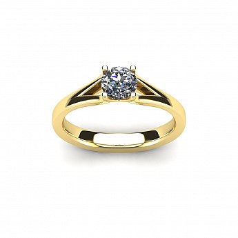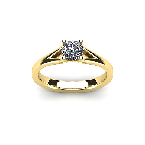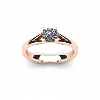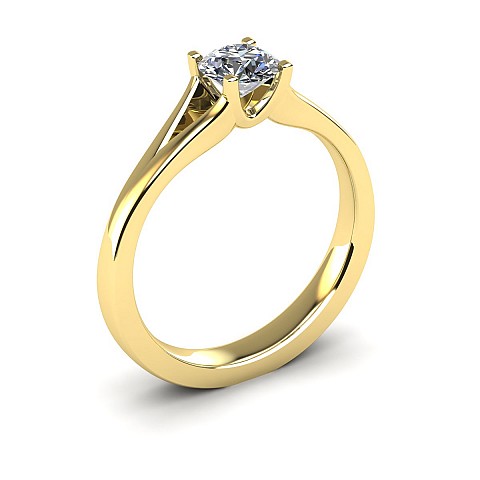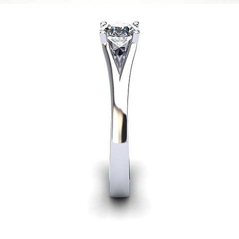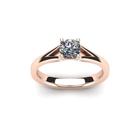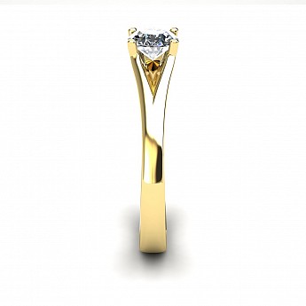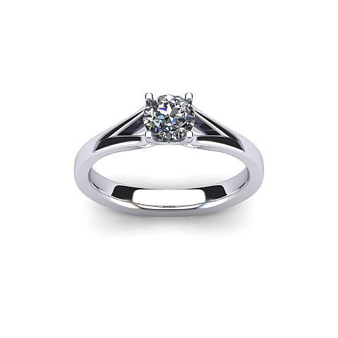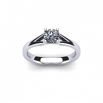 A wonderful sweeping band with split shoulders.The diamond is held by four claws and the shank is reverse taper.