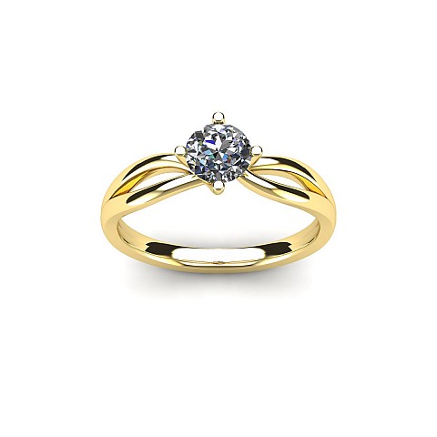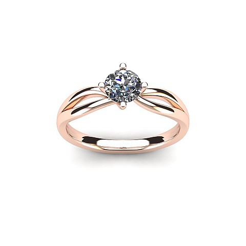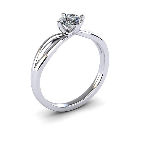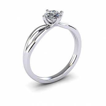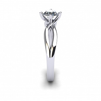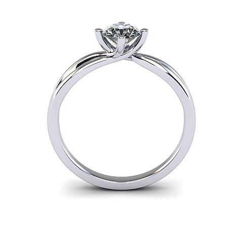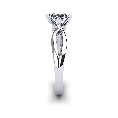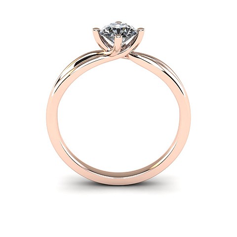 A beautiful four claw setting that has a split band that rejoins and flows into the setting.