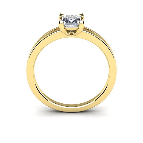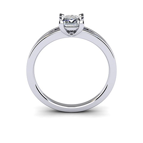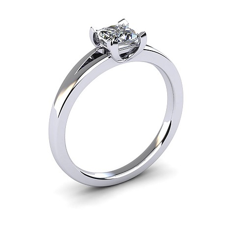 A beautiful four V claw setting with a split band that balances the ring and draws the eye to the diamond.