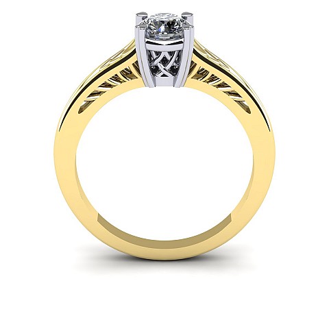 A modern filigree twist gives this traditional solitaire a unique and interesting feature.