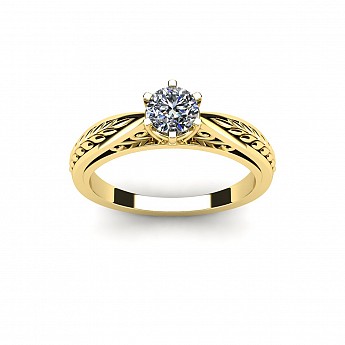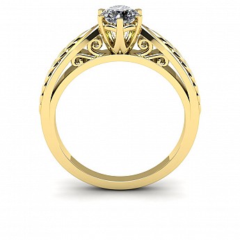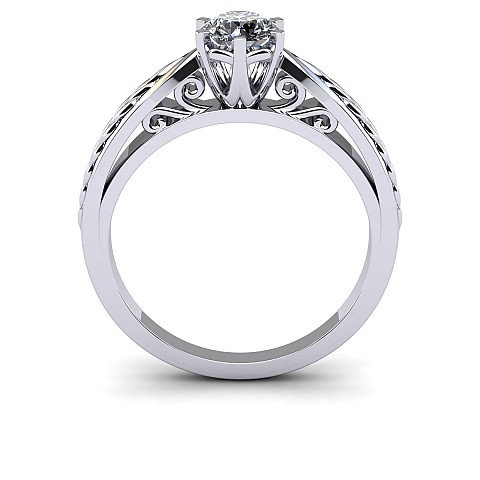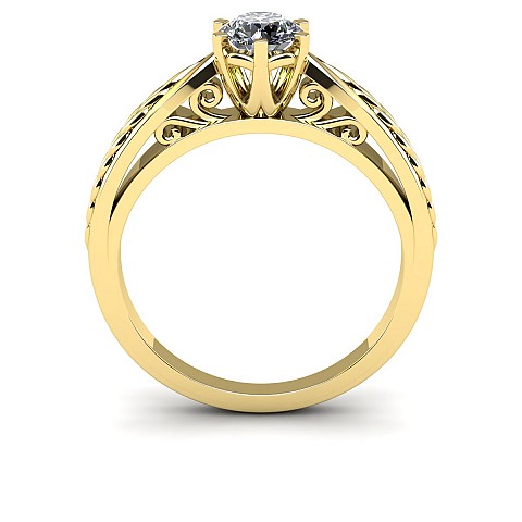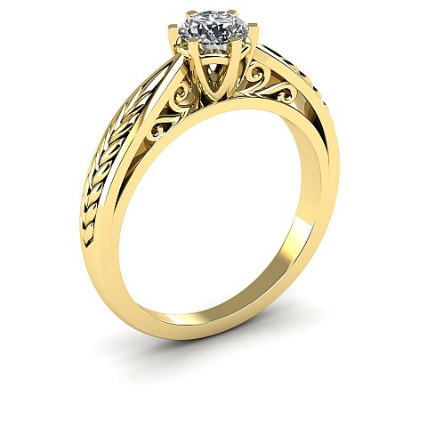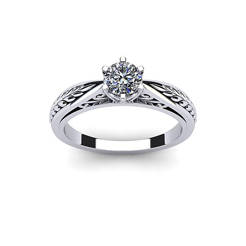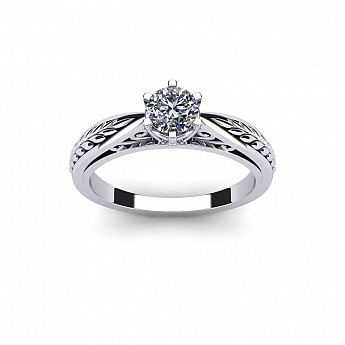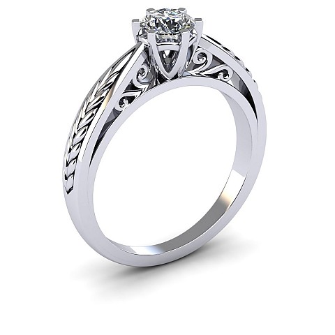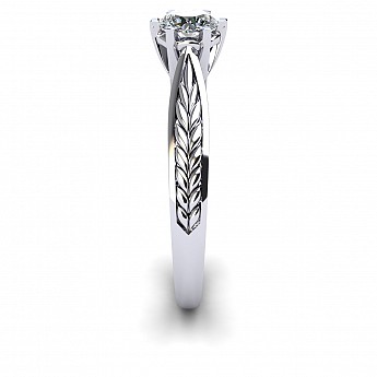 A modern take on a classic design with filigree sides and leaf patterns on the pinched shoulders.