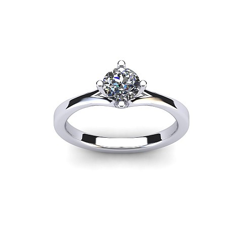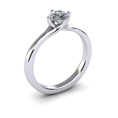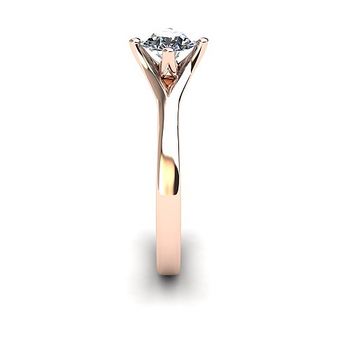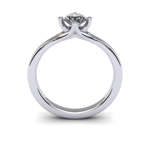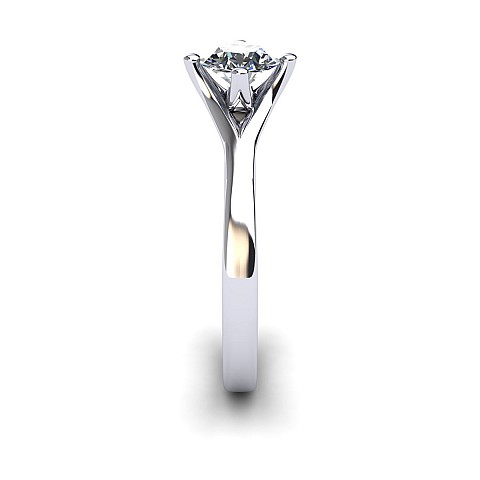 The unique positioning of the four claws creates a striking point of difference from other solitaire engagement rings. The band sweeps around on either side of the diamond to form the top and bottom claws and a cut out space at the top of the band balances the design perfectly.