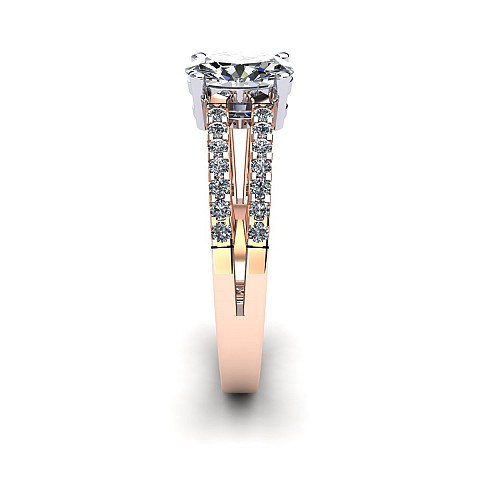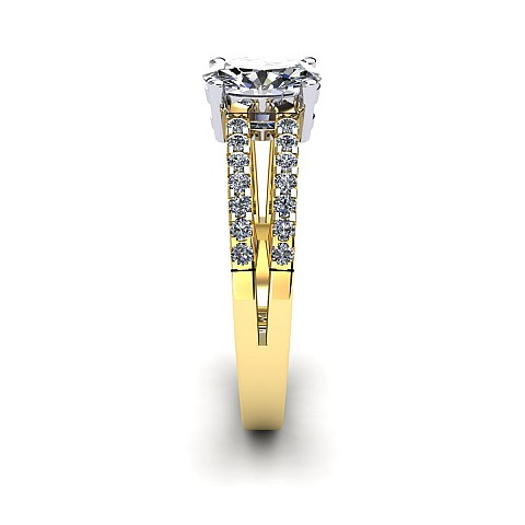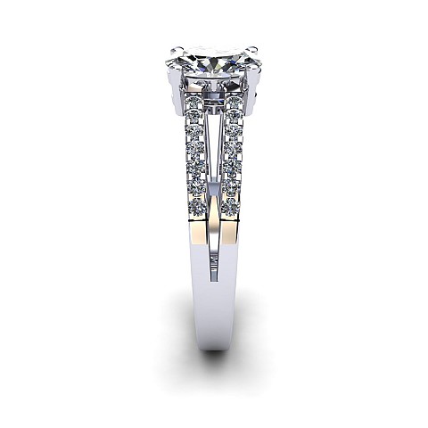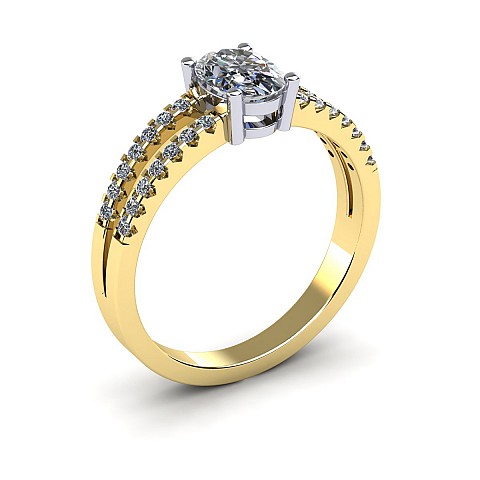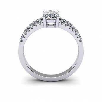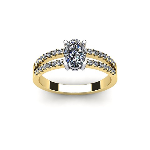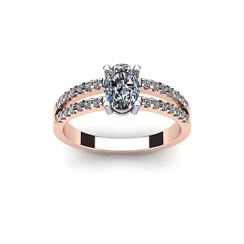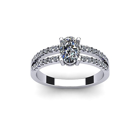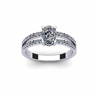 A beautiful oval cut diamond ring featuring a diamond encrusted split band.