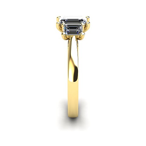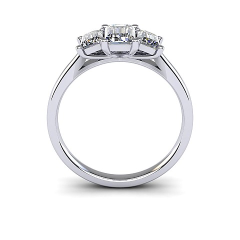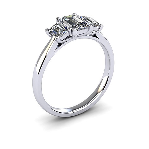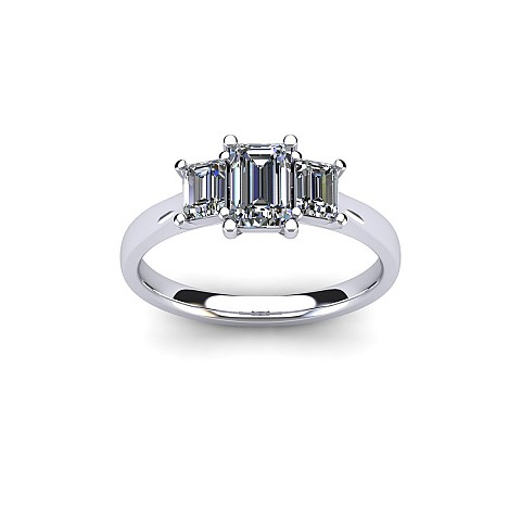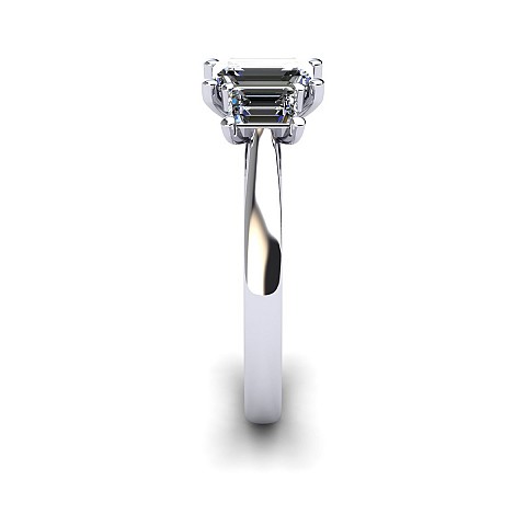 A beautifully elegant Emerald diamond engagement ring. The low setting makes it a practical every day choice without compromising its obvious beauty.