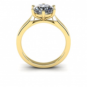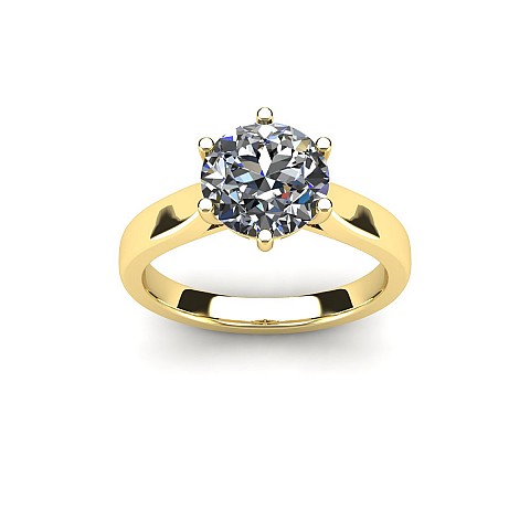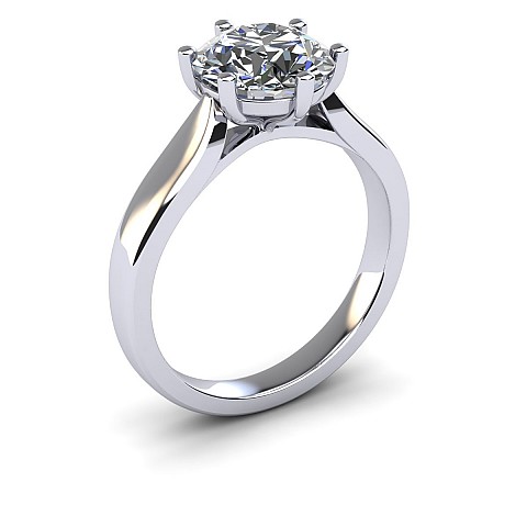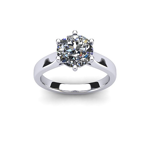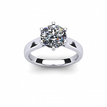 A stunning round diamond engagement ring that sits securely in a basket setting and held by six claws.