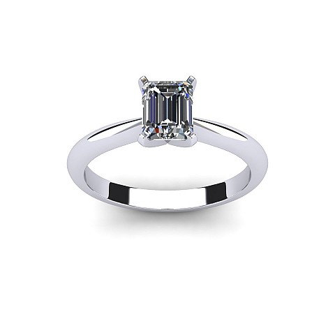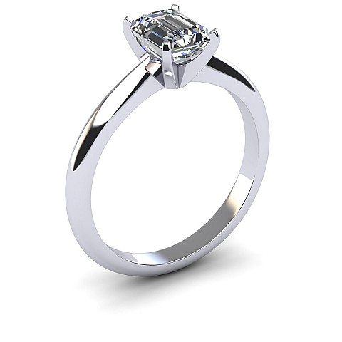 A delicate solitaire diamond engagement ring perfect for an Emerald, Radiant, Princess or Asscher cut diamond. The clean knife-edge band with pinched shoulders showcases the diamond beautifully.