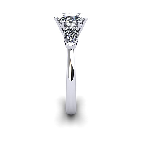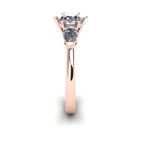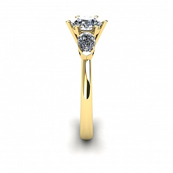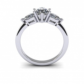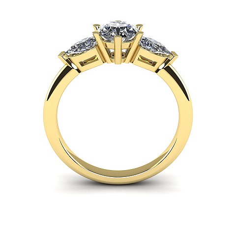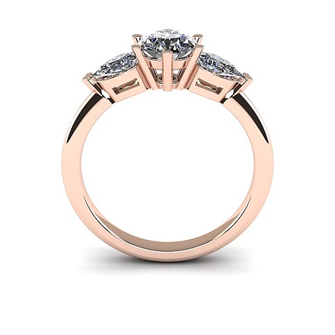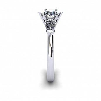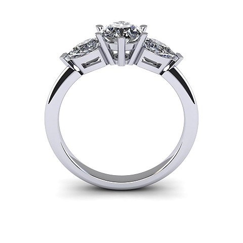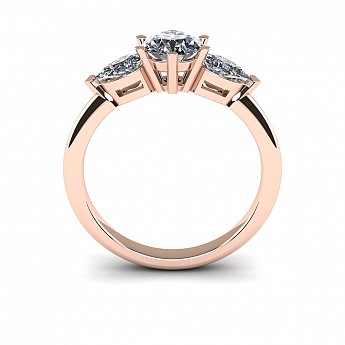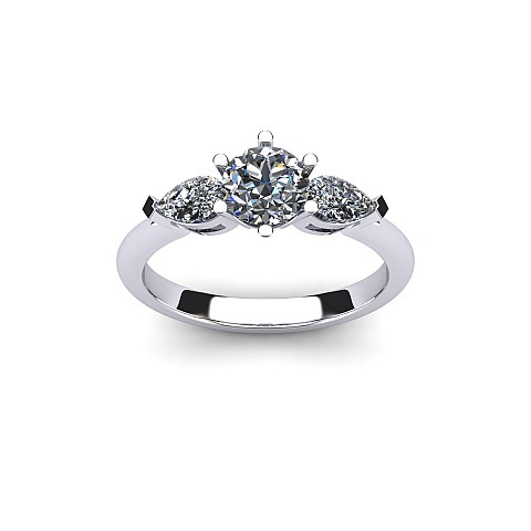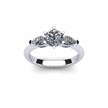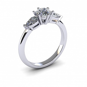 A beautiful three stone engagement ring that has a classic yet feminine feel. The pear shape side stones compliment the center diamond perfectly while also creating size and width across the finger.