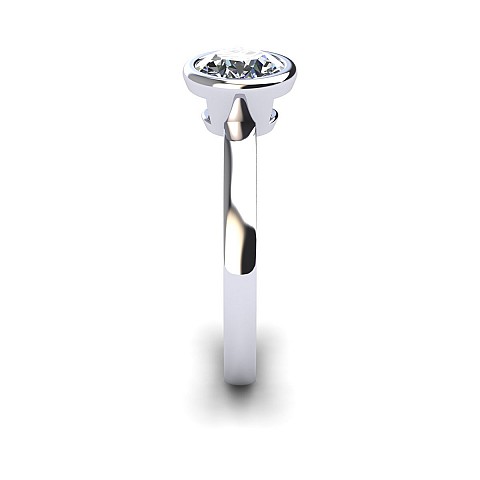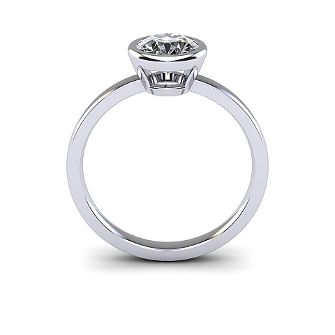 A contemporary take on the classic solitaire, this bezel set engagement ring protects the centre diamond and allows light in from the partially cut away setting. A perfect choice for women with active and busy lifestyles.