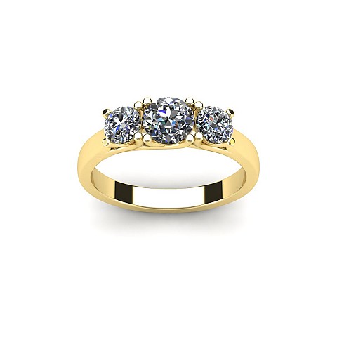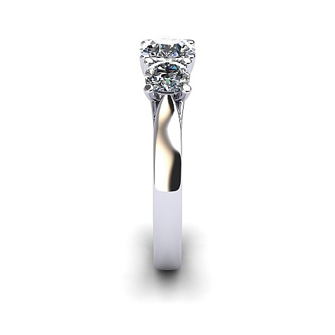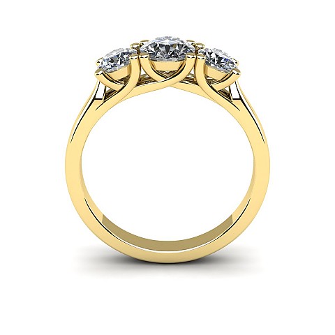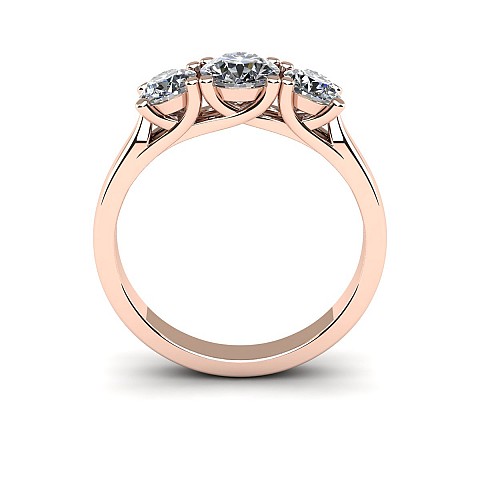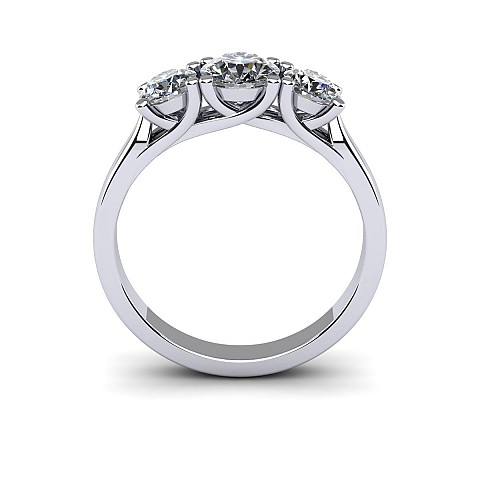 A contemporary yet classic three stone engagement ring featuring cross-over claws on a solid shank.