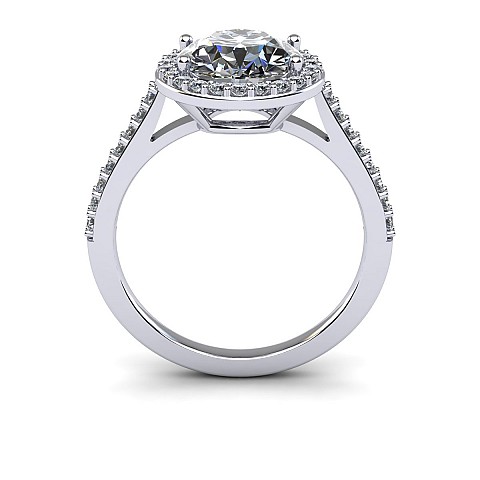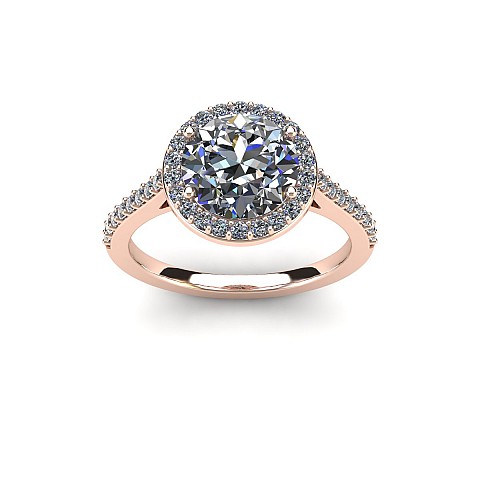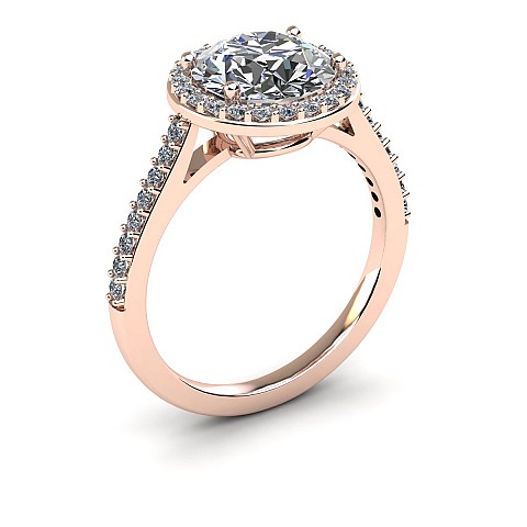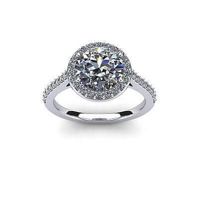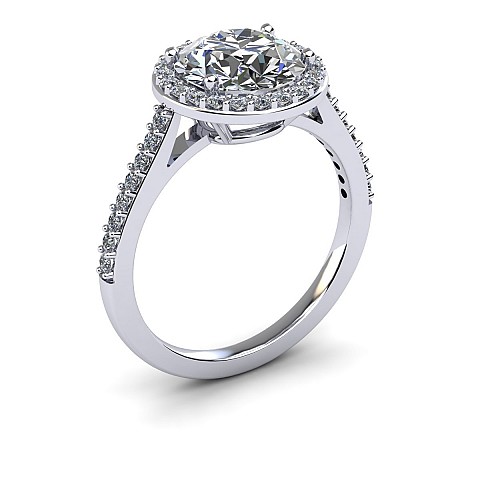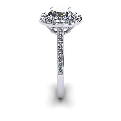 This amazing halo diamond engagement ring features small round brilliants that encircle the centre diamond and decorate the band to create maximum impact and sparkle.
